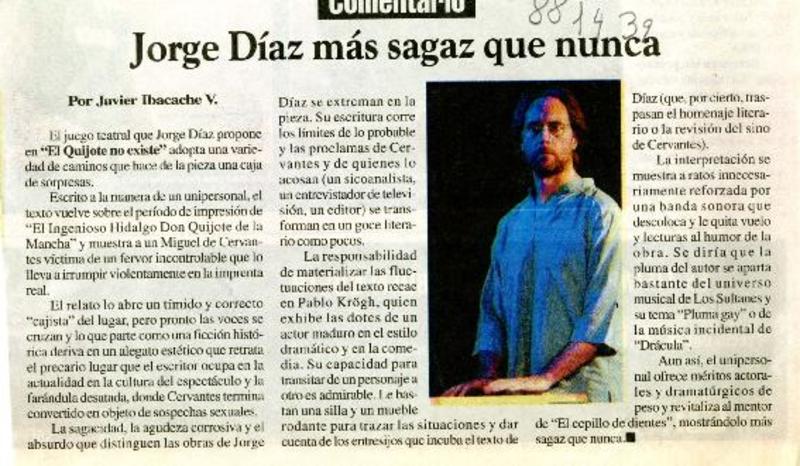 Jorge Díaz más sagaz que nunca [artículo] por Javier Ibacache V.