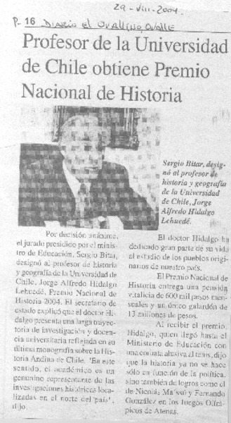 Profesor de la Universidad de Chile obtiene Premio Nacional de Historia [artículo].