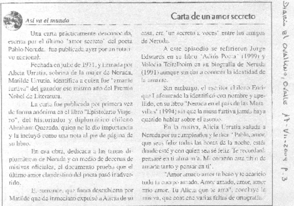 Carta de un amor secreto. [artículo].