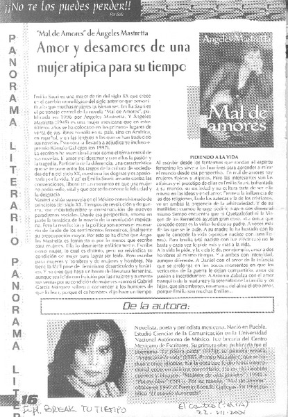 Entrevistas - Mastretta, Ángeles - Autoras mexicanas - Mal de amores