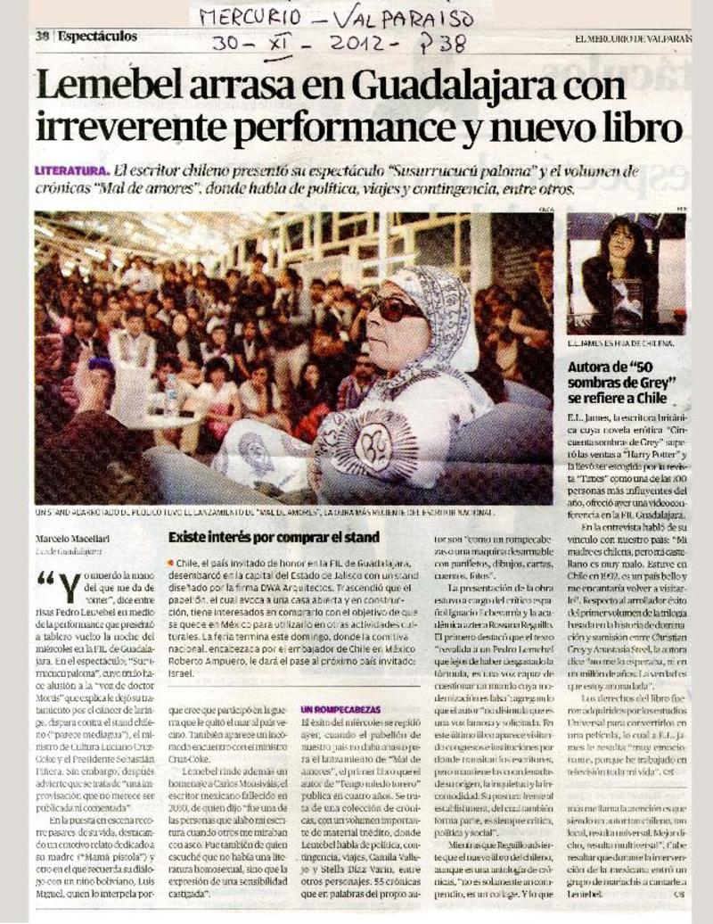 Lemebel arrasa en Guadalajara con irreverente performance y nuevo libro [artículo] Marcelo Macellari.
