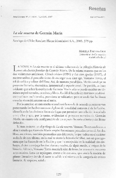 La Ola muerta de Germán Marín [artículo] Mariela fuentes Leal.