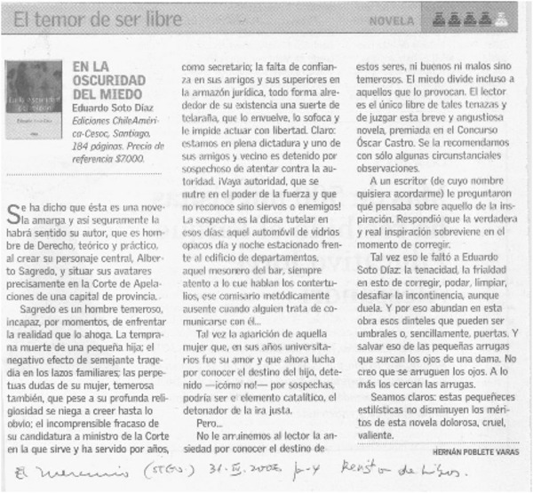 En la oscuridad del miedo [artículo] por Alvaro Mesa Latorre.