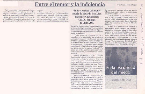 Entre el temor y la indolencia [artículo] Marino Muñoz Lagos.