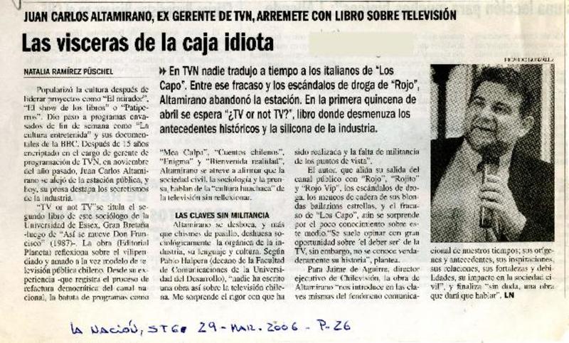 Las vísceras de la caja idiota [artículo] Natalia Ramírez Püschel.