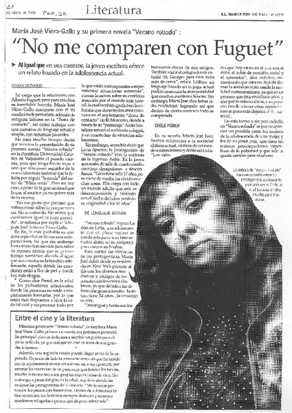 No me comparen con Fuguet" [artículo] Vivian Olivares.