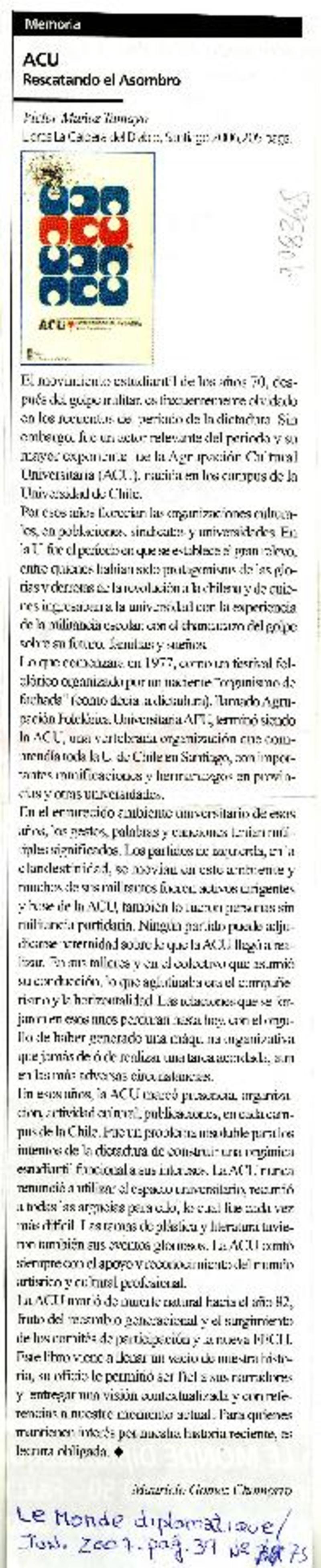Autores chilenos - Muñoz Tamayo, Víctor - ACU Rescatando el asombro