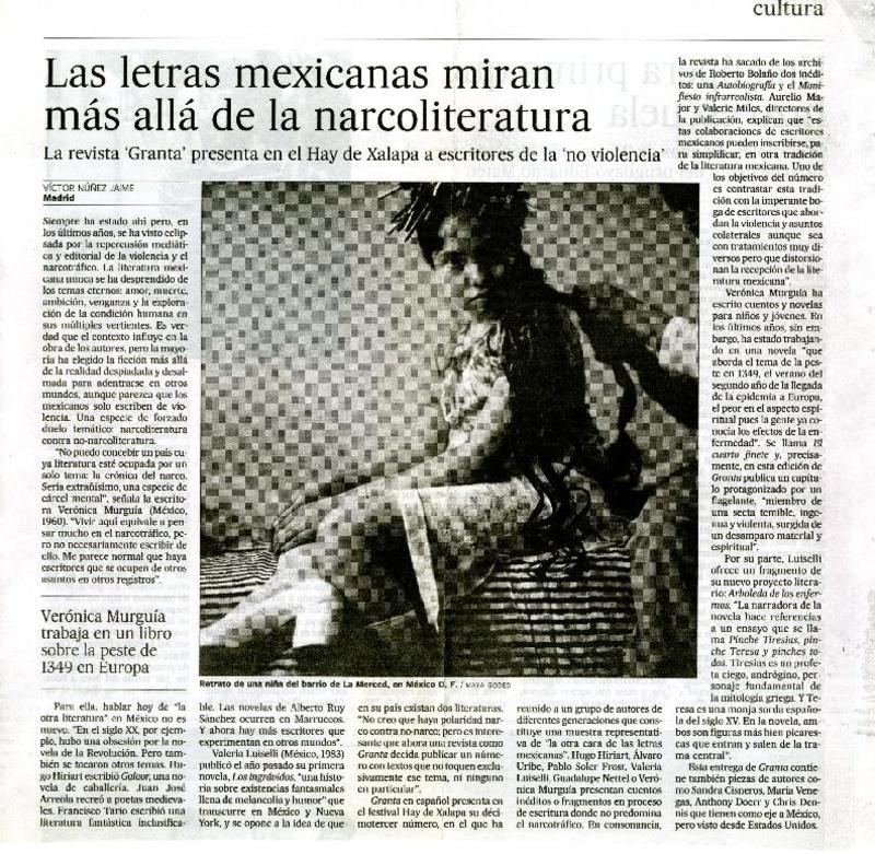 Las letras mexicanas miran más allá de la narcoliteratura [artículo] Víctor Núñez Jaime