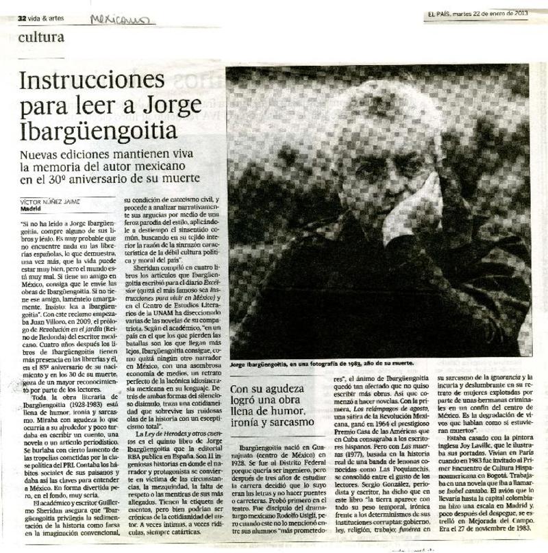 Instrucciones para leer a Jorge Ibargüengoitia [artículo] Víctor Núñez Jaime.