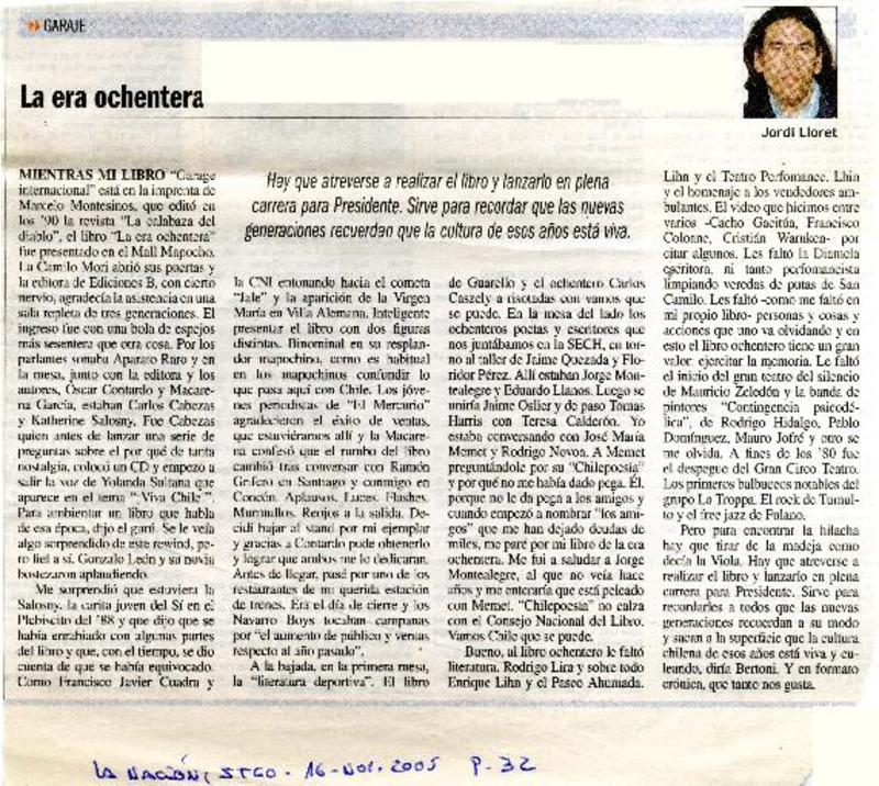 Autores chilenos - Contardo, Oscar - García, Macarena - La era ochentera