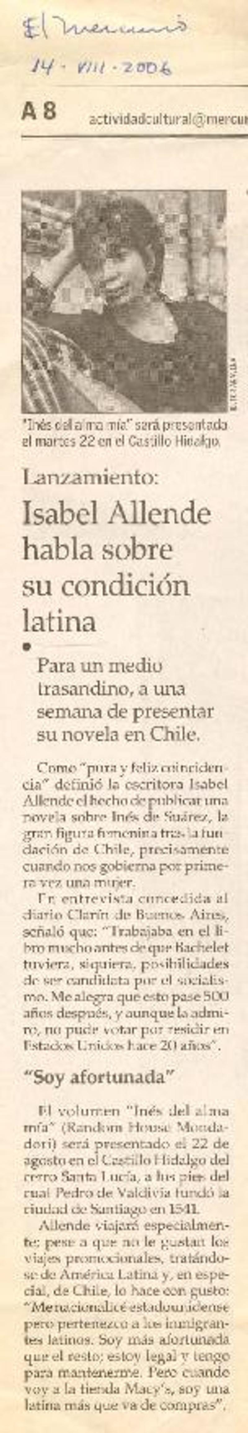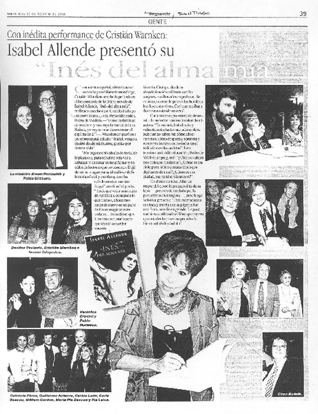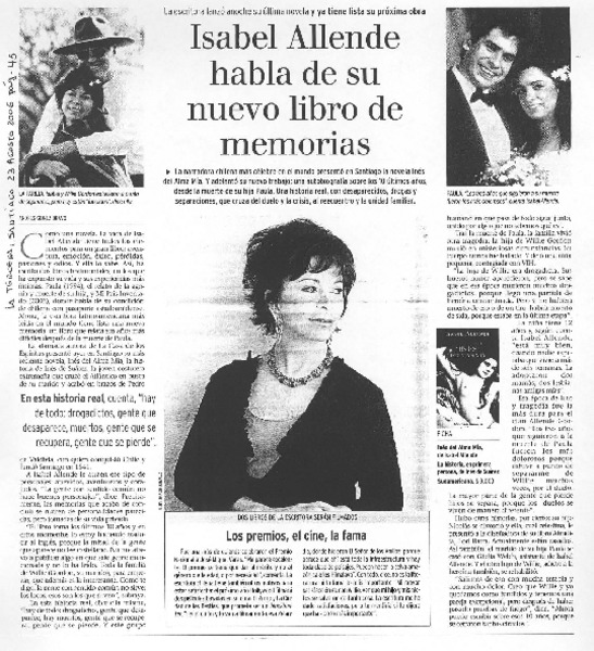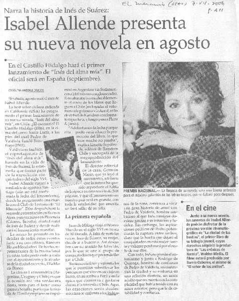 Isabel Allende presenta su nueva novela en agosto [artículo] Carolina Andonie Dracos.