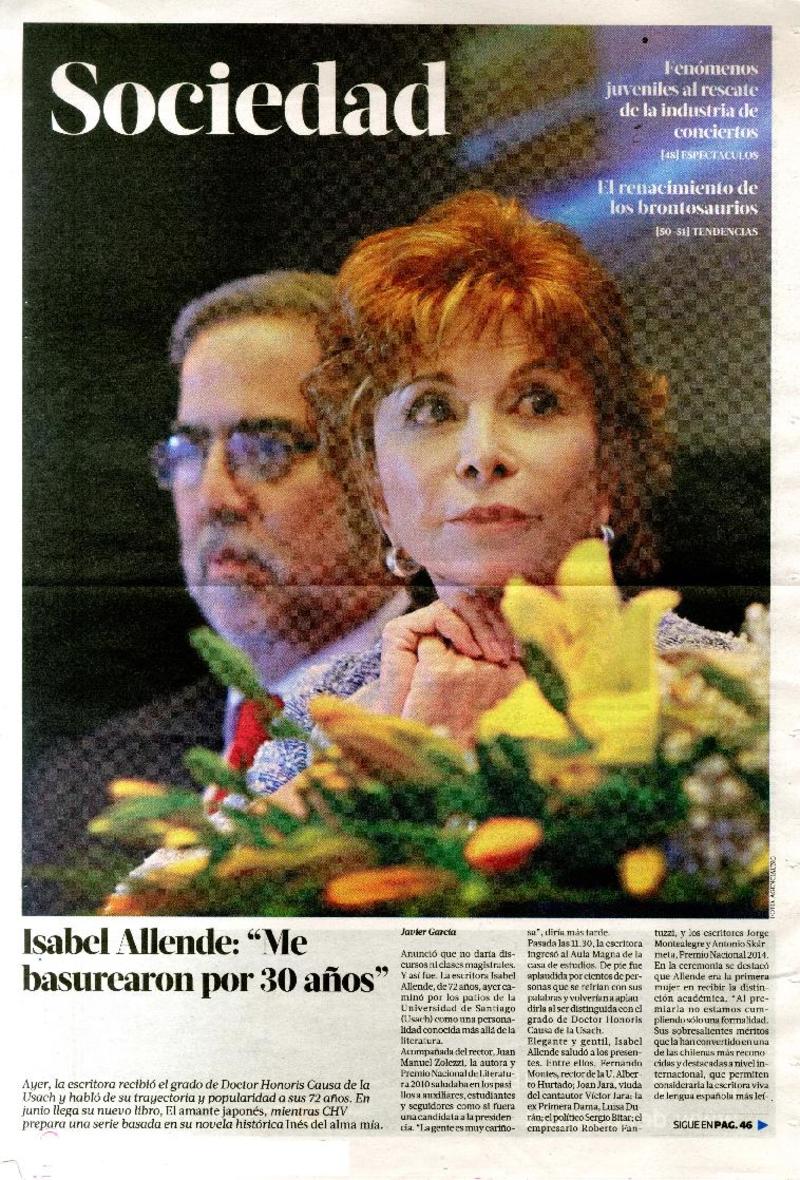 Isabel Allende: "Me basurearon por 30 años" [artículo] Javier García.