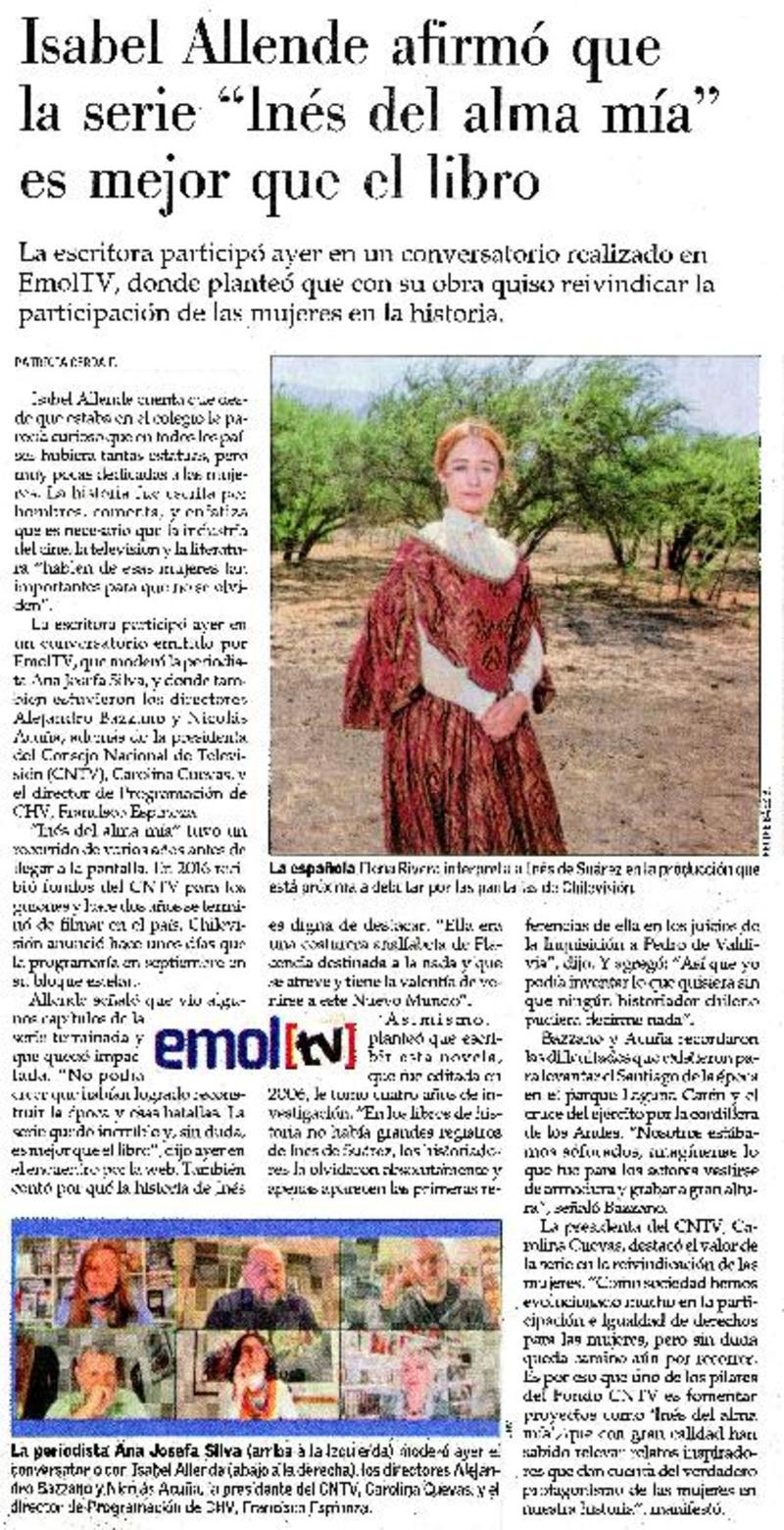 Isabel Allende afirmó que la serie "Inés del alma mía" es mejor que el libro [artículo] Patricia Cerda.