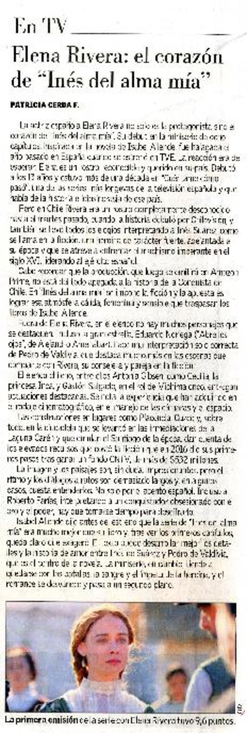 Elena Rivera el corazón de Inés del alma mía [artículo] : Patricia Cerda.