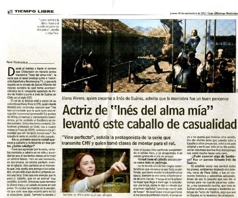 Actriz de "Inés del alma mía" levantó este caballo de casualidad [artículo] René Valenzuela.