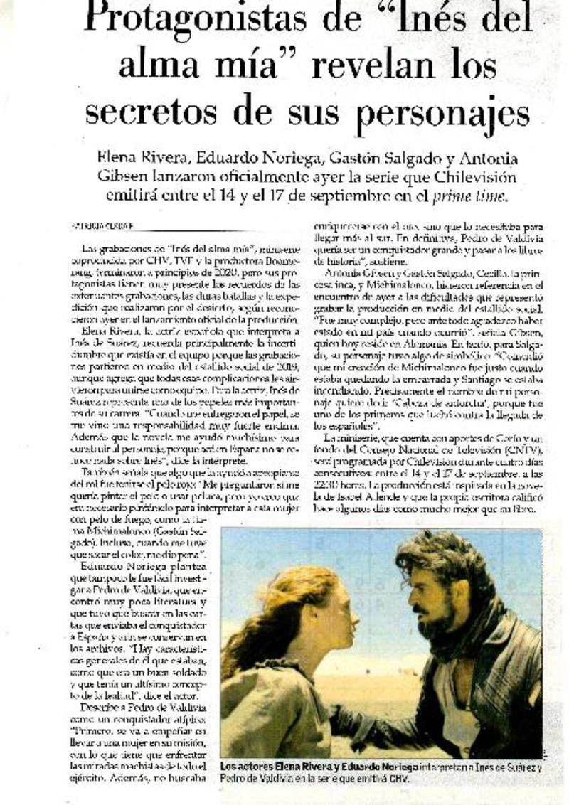 Protagonistas de "Inés del alma mía" revelan los secretos de sus personajes [artículo] Patricia Cerda