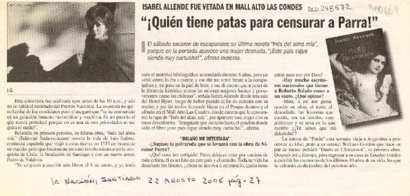 "Quién tiene patas para censurar a Parra!" [artículo] J. G.