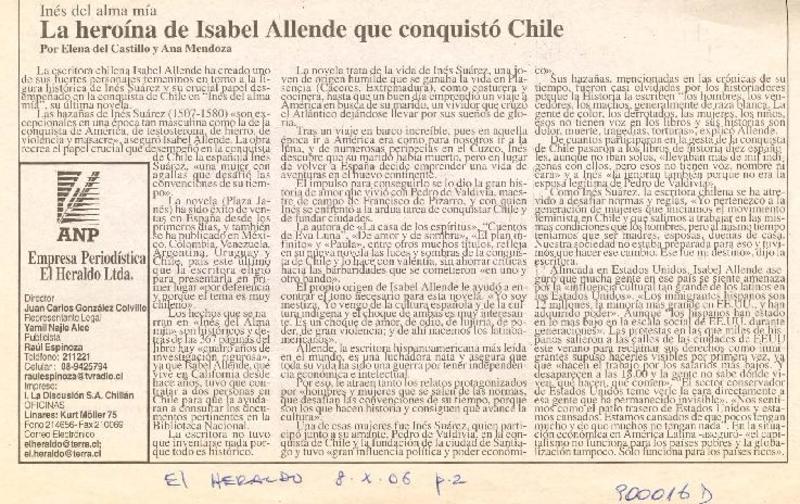 La heroína de Isabel Allende que conquistó Chile [artículo] Por, Elena de Castillo y Ana Mendoza.