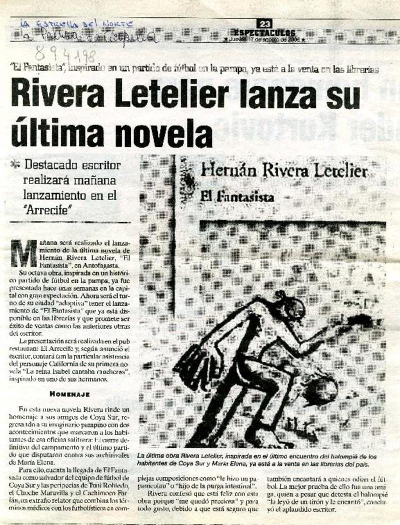 Colegio San Luis lo postulará para que se lleve el máximo galardón de la literatura : Rivera Letelier va por el Premio Nacional [artículo]