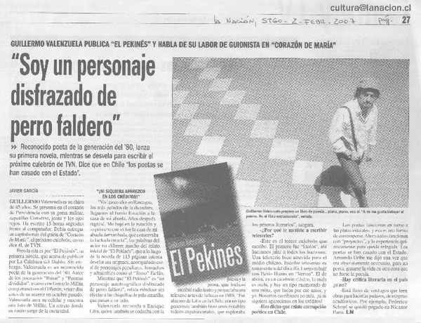 Autores chilenos - Entrevistas - Valenzuela, Guillermo - Pekinés
