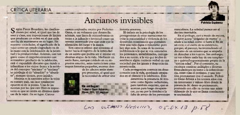 Ancianos invisibles [artículo] Patricia Espinosa.