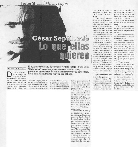 César Sepúlveda lo que ellas quieren (entrevista) [artículo]Marcela Rivera.