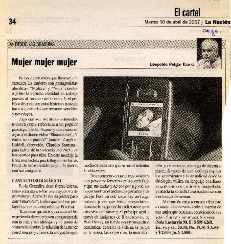 Mujer mujer mujer [artículo] Leopoldo Pulgar Ibarra.