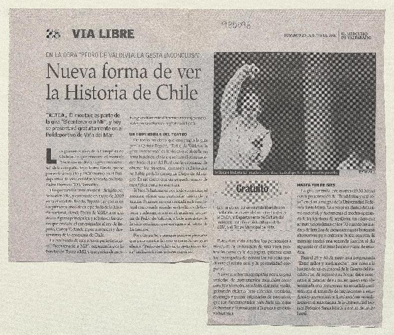 Autores chilenos - Pedro de Valdivia, la gesta inconclusa - Tryo Teatro Banda (Compañía, Chile)