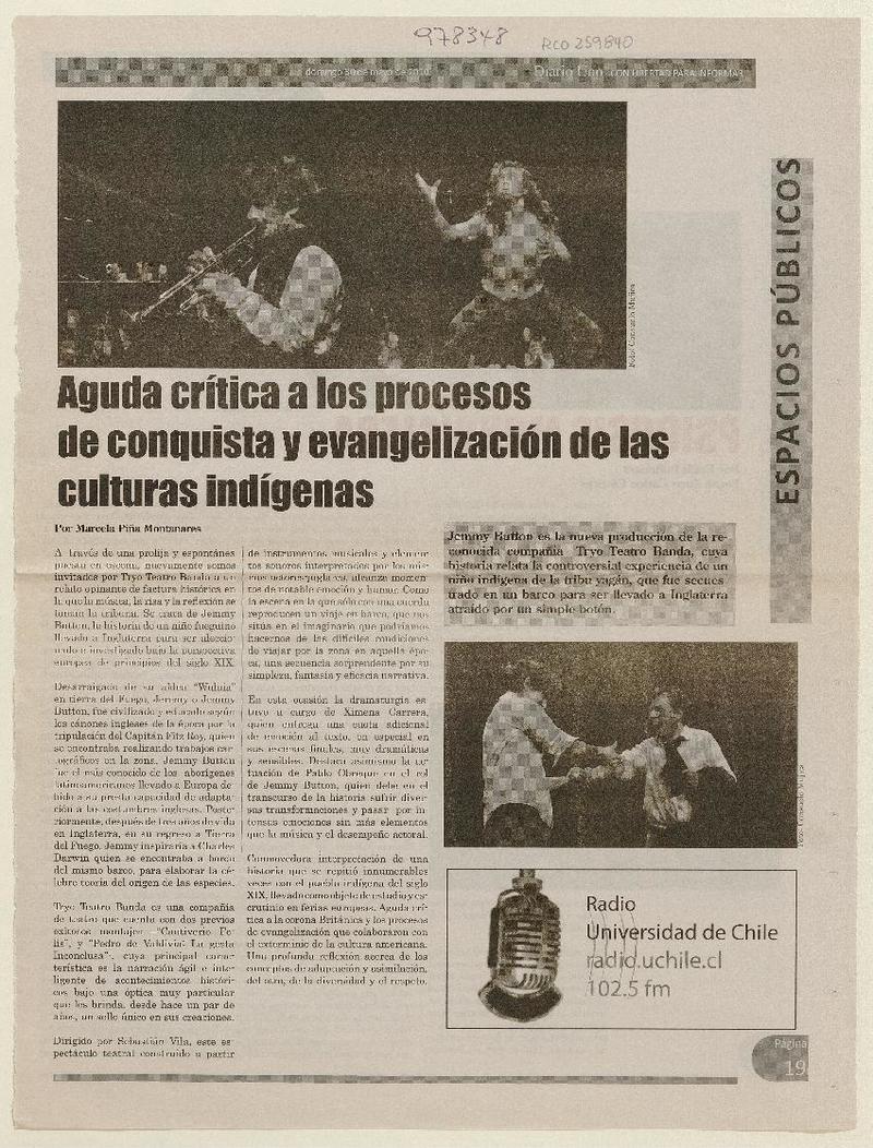 Aguda crítica a los procesos de conquista y evangelización de las cultura indígenas [artículo] Marcela Piña Montanares.