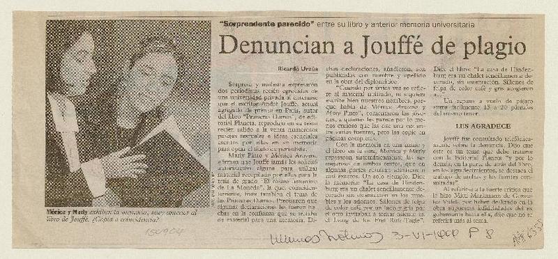 Denuncian a Jouffé de plagio [artículo] Ricardo Urzúa.