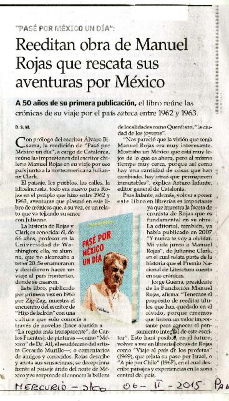 Reeditan obra de Manuel Rojas que rescata sus aventuras por México [artículo] D.S.M.