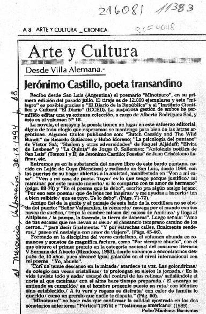 Jerónimo Castillo, poeta transandino [artículo] Pedro Mardones Barrientos.