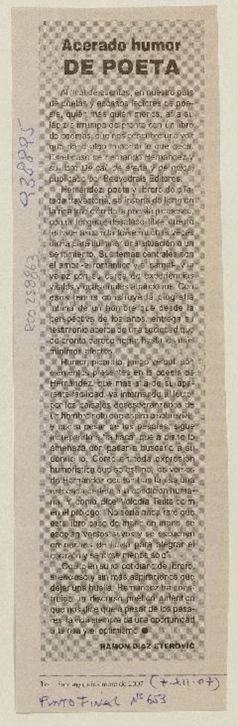 Acerado humor de poeta [artículo] Ramón Díaz Eterovic.