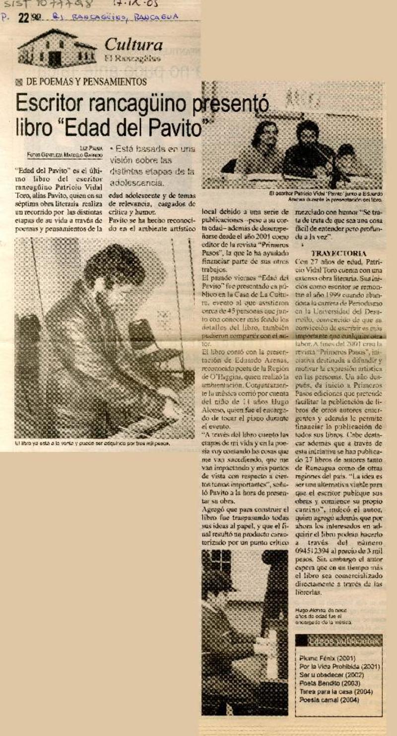 Escritor rancagüino presentó libro "edad del pavito" [artículo] Luz Palma.