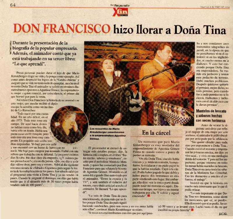 Don Francisco hizo llorar a Doña Tina [artículo]J.C.G.