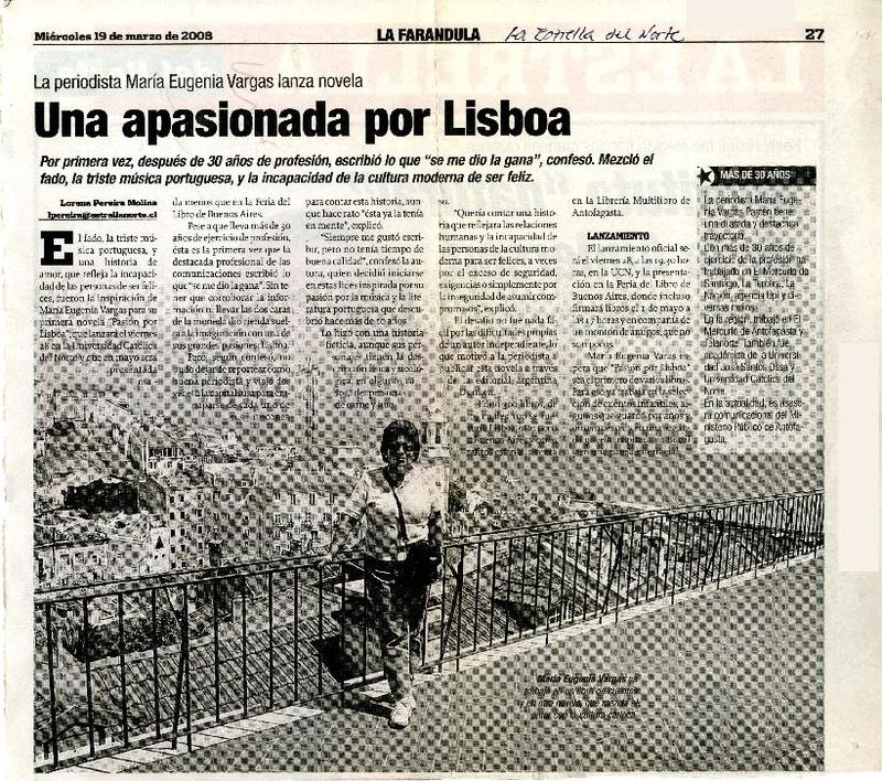 Autores chilenos - Entrevistas - Vargas, María Eugenia - Pasión por Lisboa