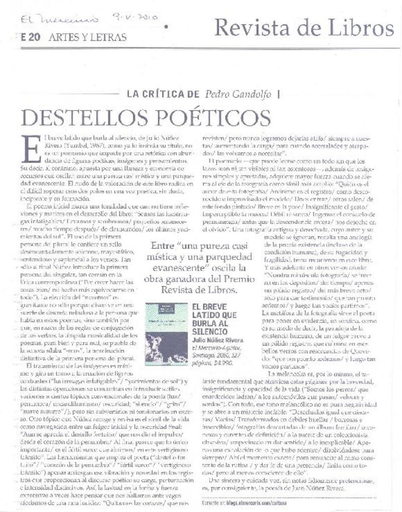 Destellos poéticos [artículo] Pedro Gandolfo.