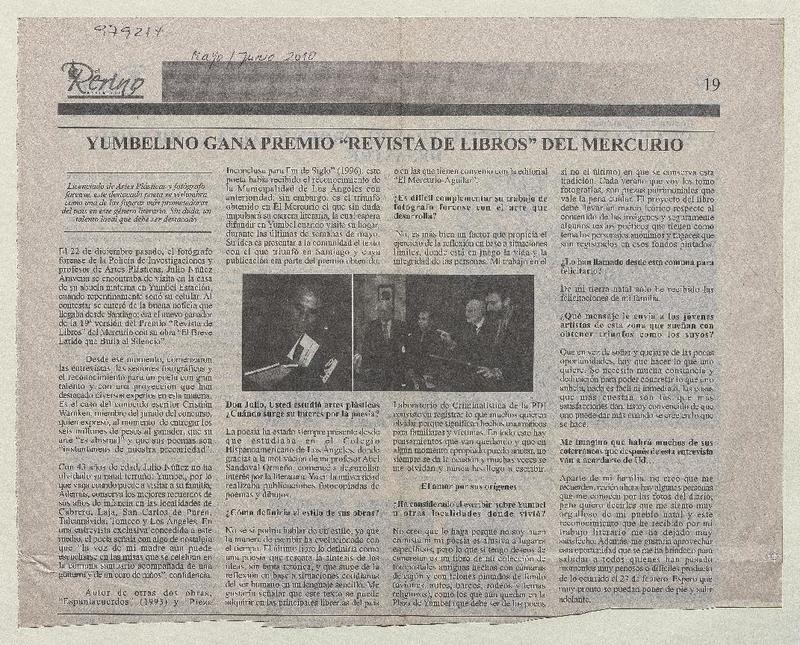 Ganador del Premio Revista de Libros [artículo] Julio Núñez Rivera.