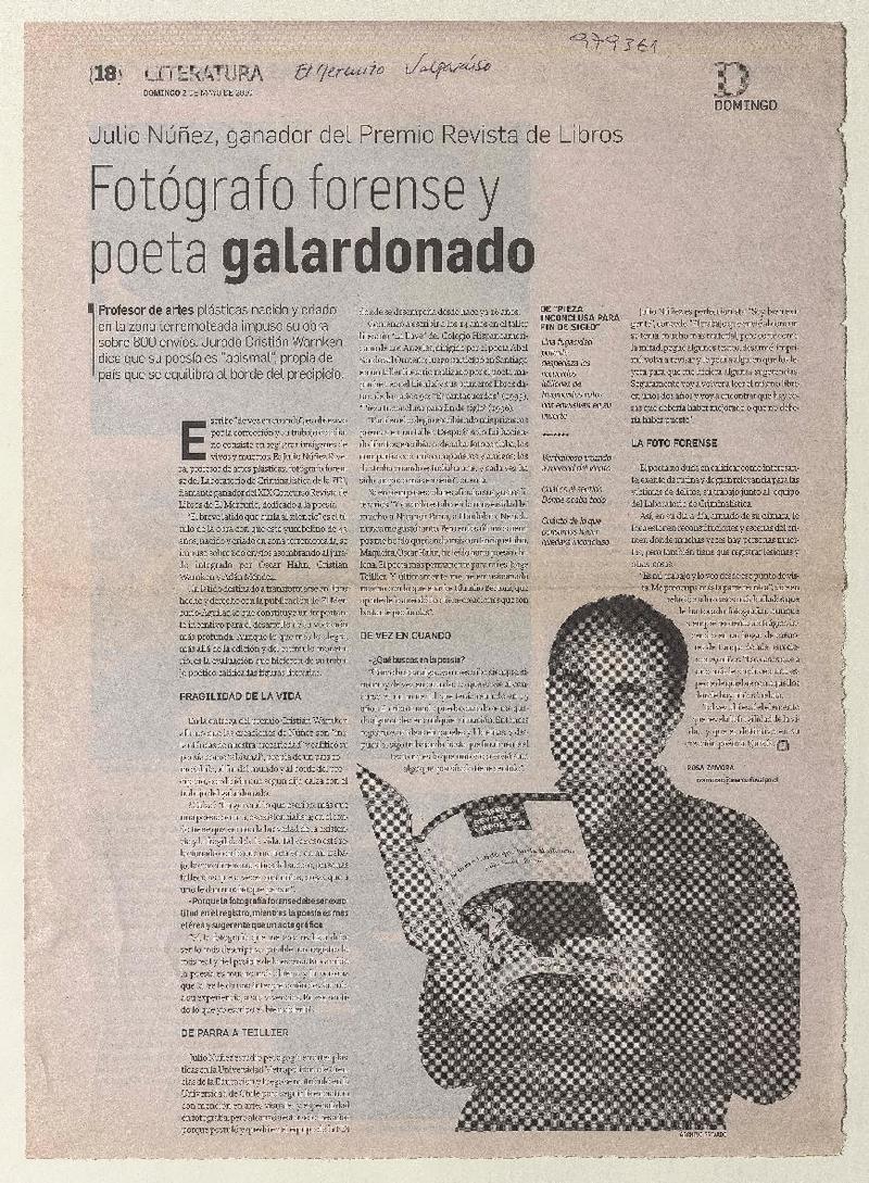 Fotógrafo forense y poeta galardonado [entrevista] [artículo] : Rosa Zamora.