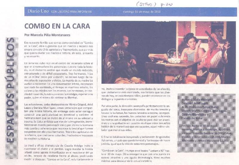 Combo en la cara [artículo] Marcela Piña Montanares.
