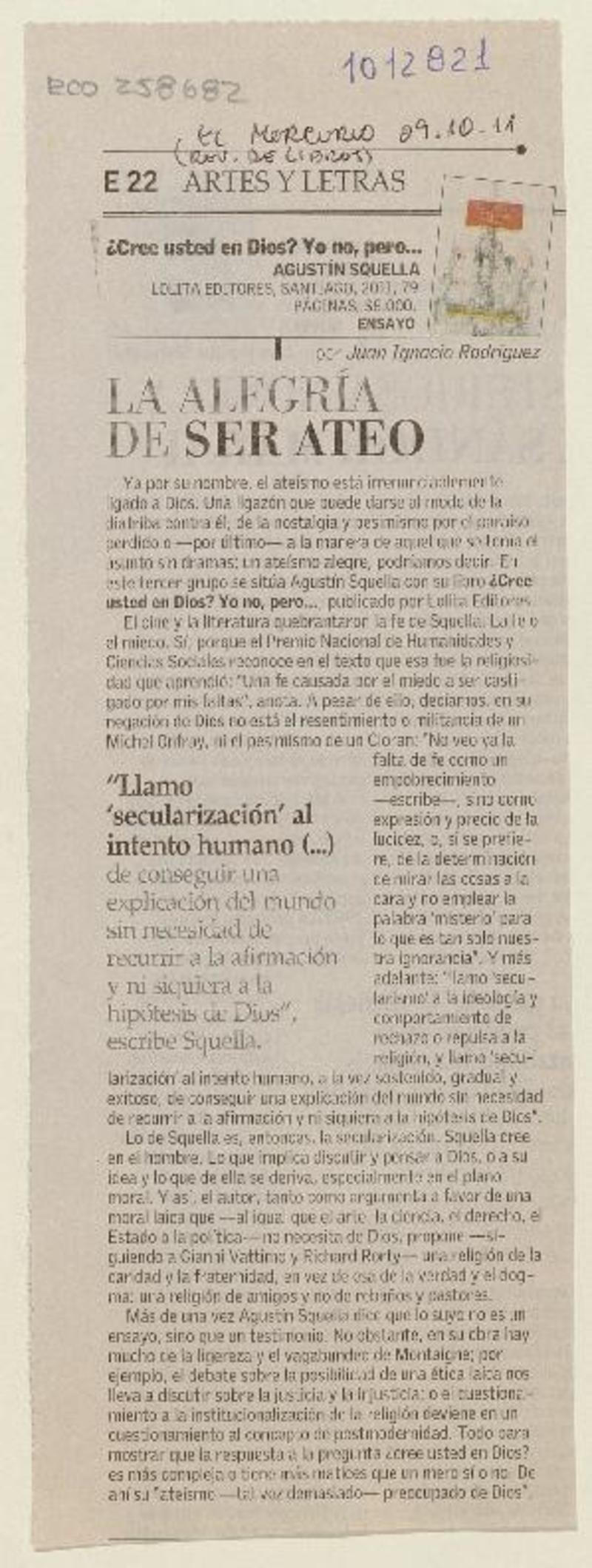 La alegría de ser ateo [artículo] Juan Ignacio Rodríguez.