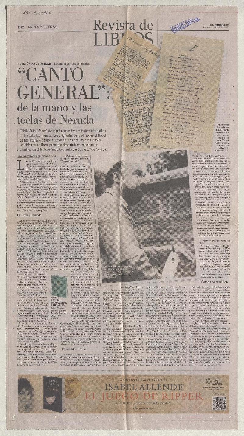 "Canto general": de la mano y las teclas de Neruda [artículo] Juan Ignacio Rodríguez y Patricio Jara.