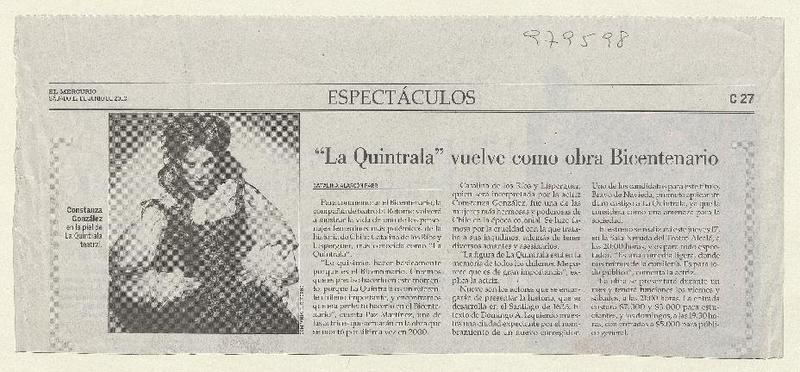 La Quintrala hace de las suyas en las tablas [artículo].