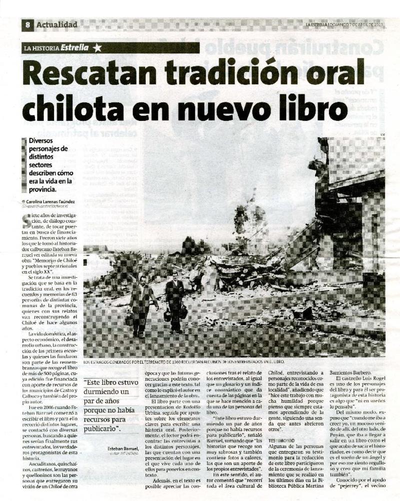 Rescatan tradición oral chilota en nuevo libro [artículo] Carolina Larenas Faúndez