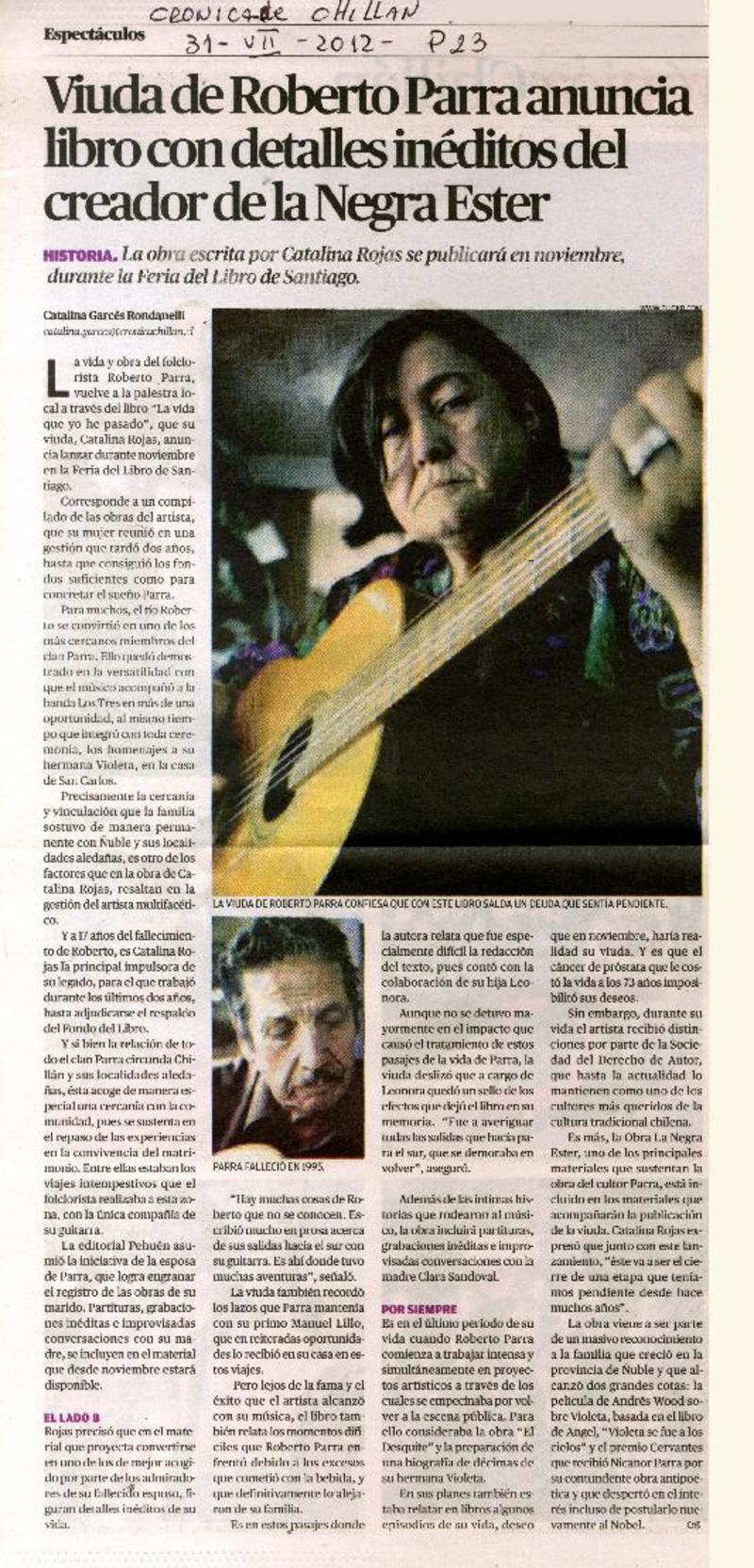 Visita de Isabel Parra a San Carlos abre puertas a conservar raíces de Violeta [artículo] Catalina Garcés Rondanelli.