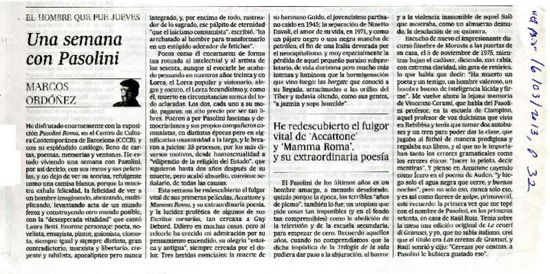 Una semana con Pasolini [artículo] Marcos Ordoñez