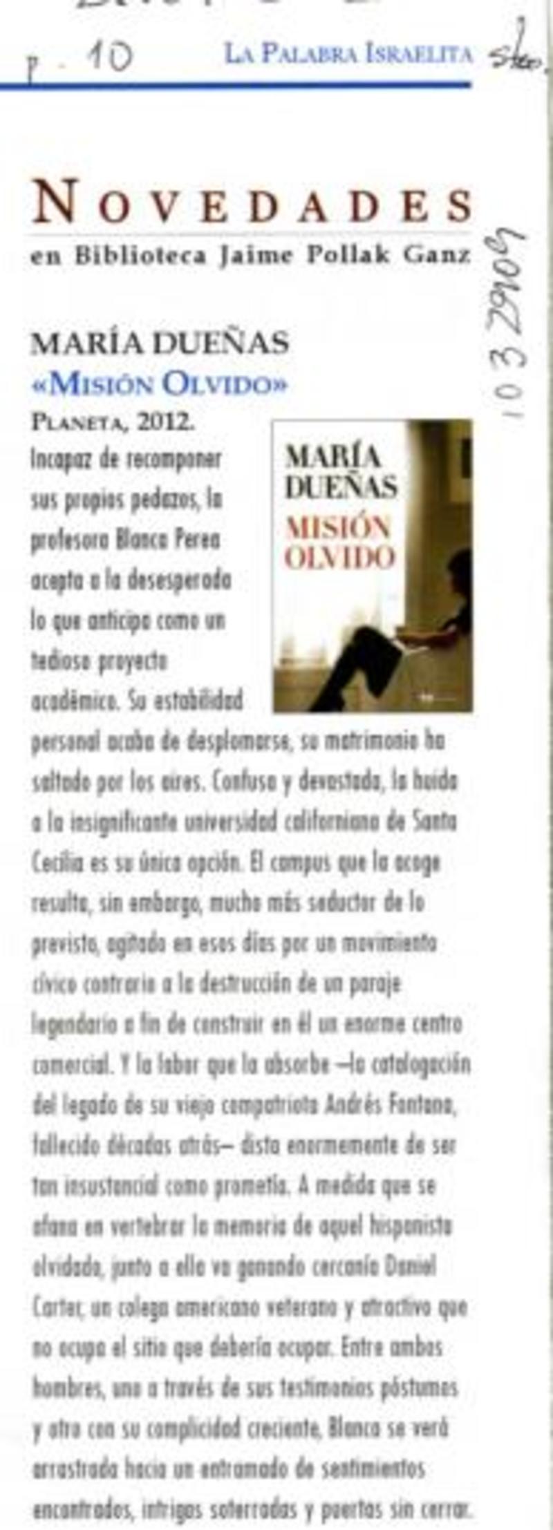 Autoras españolas - Dueñas, María - Misión olvido