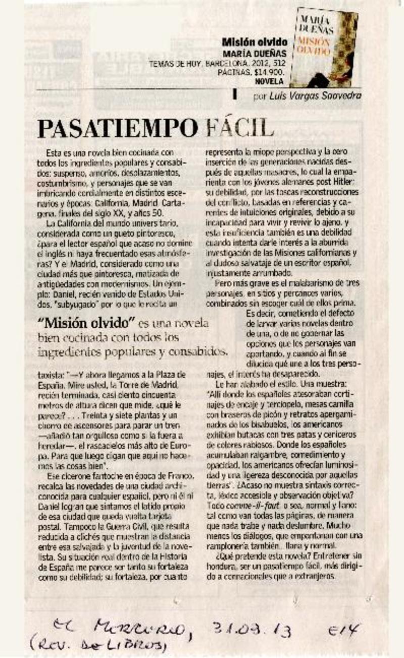Pasatiempo fácil [artículo] Luis Vargas Saavedra