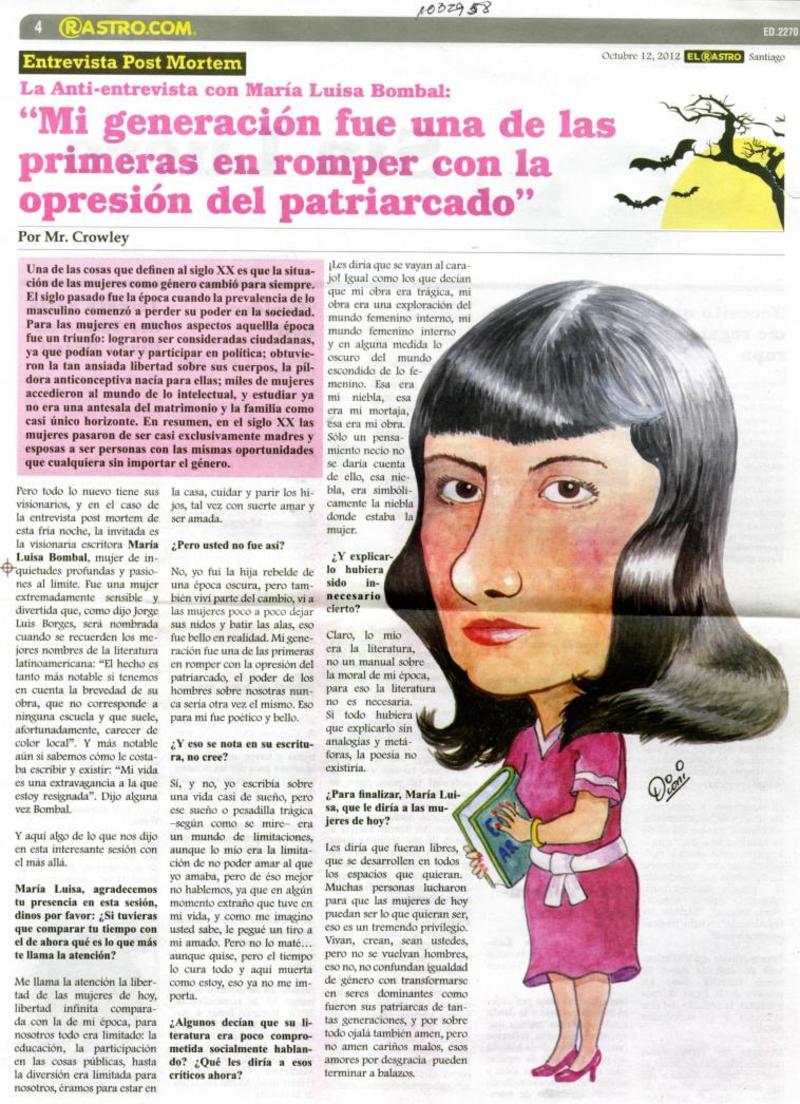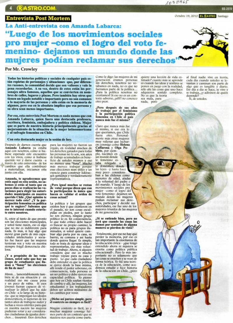 La Anti-entrevista con Amanda Labarca: Luego de los movimientos sociales pro mujer -como el logro del voto femenino- dejamos un mundo donde las mujeres podían reclamar sus derechos [artículo] Mr. Crowley