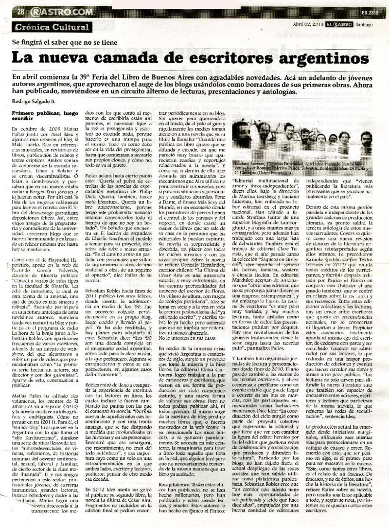 La nueva camada de escritores argentinos [artículo] Rodrigo Salgado B.